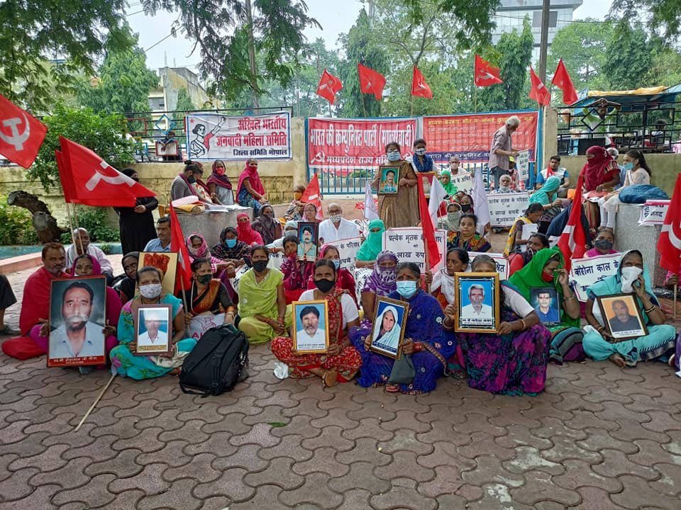 भोपाल। कोरोना महामारी की दोनों लहर के दौरान इस महामारी और उसके कारण बाकी बीमारियों में इलाज न मिल पाने के चलते हुयी मौतों वाले परिवारों को प्रति परिवार 5 लाख रुपये की राहत राशि प्रदान करने, प्रति परिवार एक व्यक्ति को स्थायी शासकीय नौकरी देकर उनका भविष्य सुरक्षित करने की मांगों को लेकर आज, बुधवार को मार्क्सवादी कम्युनिस्ट पार्टी (सीपीएम) ने यहां भोपाल में मध्य प्रदेश विधानसभा पर धरना दिया।