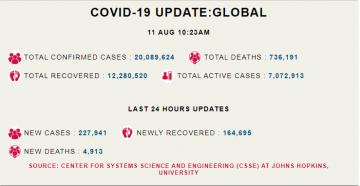 कोरोना अपडेट: दुनिया भर में 2 लाख 27 हज़ार नए मामले, कुल मामलों की संख्या 2 करोड़ के पार