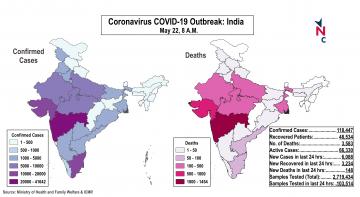 देश भर में 24 घंटों अब तक के सबसे अधिक नये मामले सामने आये हैं। देश में अब कोरोना से संक्रमित लोगों की कुल संख्या 1,18,447 हो गयी है।