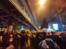 गुरुवार को घोषित किए गए आधिकारिक प्रतिबंध के बावजूद हज़ारों प्रदर्शनकारियों ने राजधानी के केंद्र में स्थित डेमोक्रेसी मोनूमेंट के पास इकट्ठा होना जारी रखा।